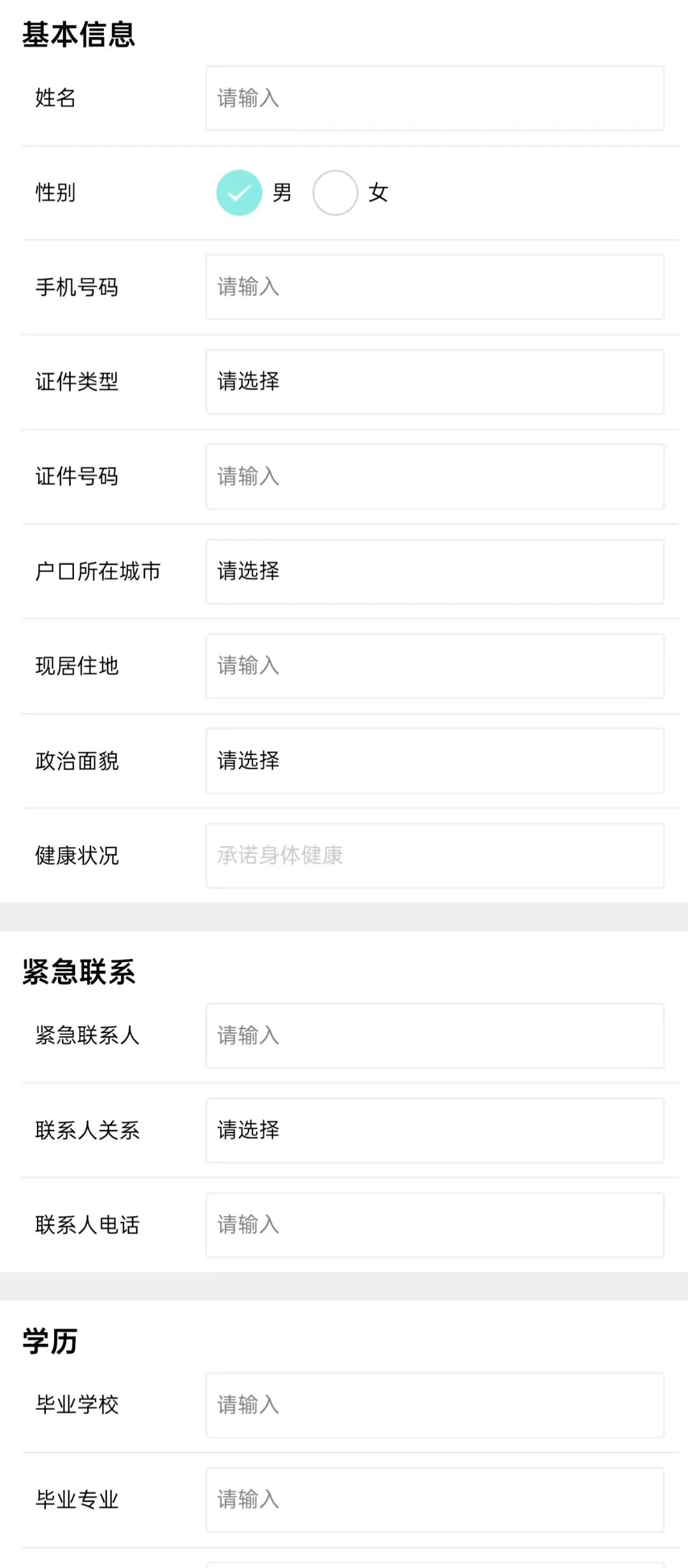 申请信息填写
