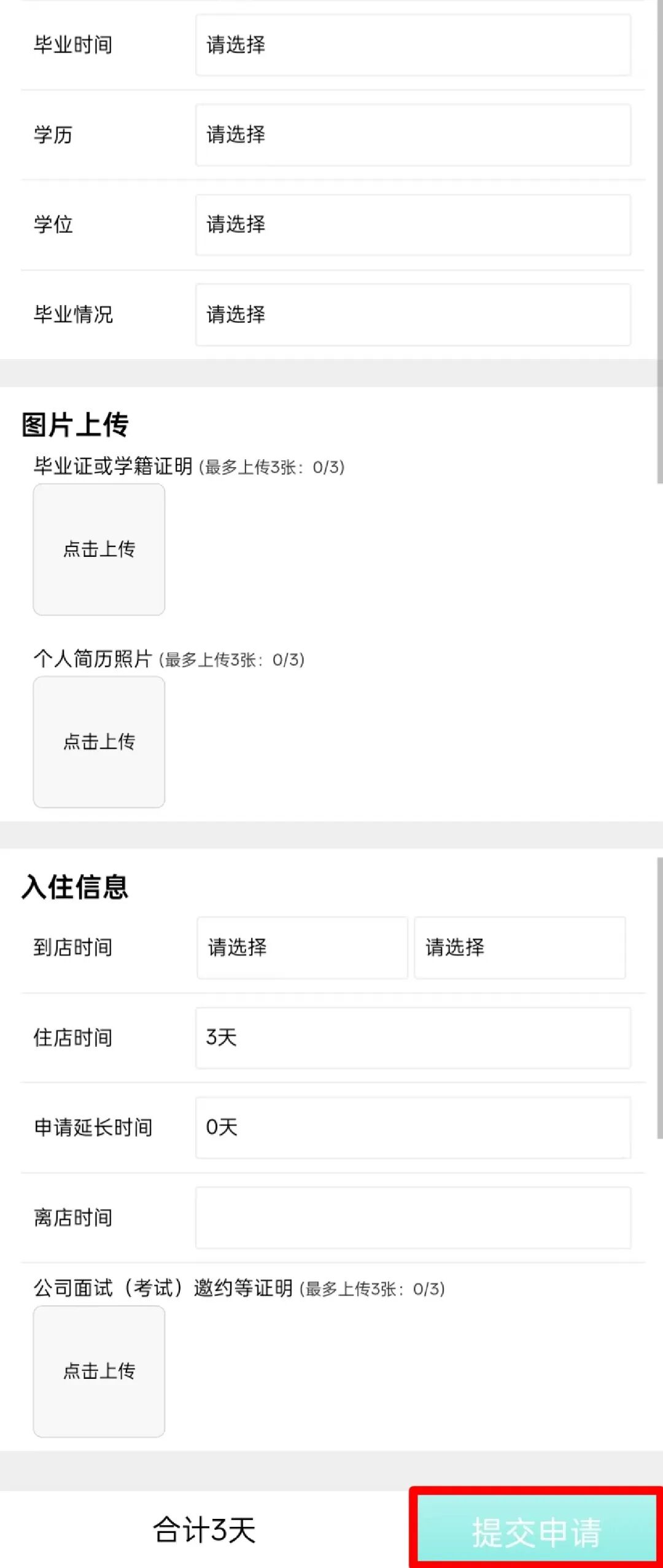 哪些人能申请3天免费住宿